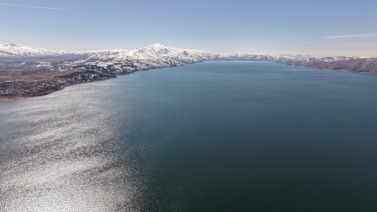 Kar, güneş ve maviliğin buluştuğu Hazar Gölü mest etti